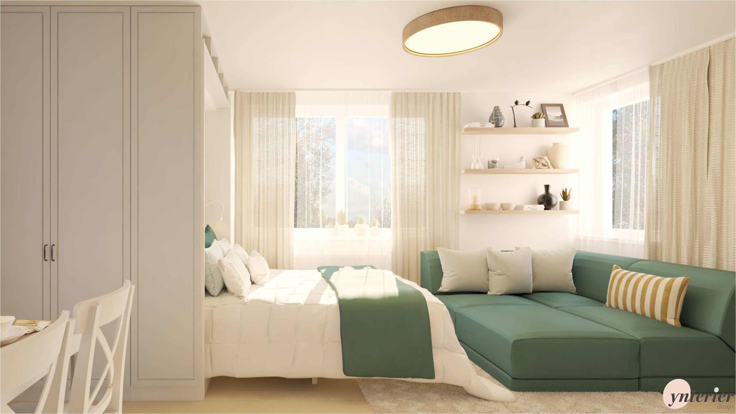 Byt zahŕňa otvorený priestor, ktorý spája predsieň, kuchyňu, obývačku a dokonca aj spací kút. Pre takéto bývanie je kľúčové nielen dôkladné plánovanie, ale aj multifunkčný dizajn, ktorý umožní každému kútu bytu plniť viacero úloh.
